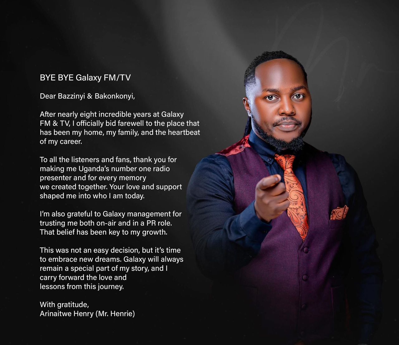 Popular Galaxy TV and FM presenter Mr. Henrie has announced his departure from the station after 8 years of service.